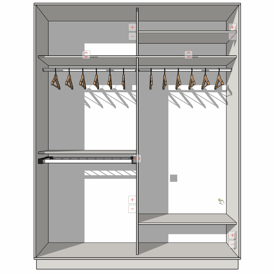 Иногда требуется быстро поменять местами секции в шкафу. В новой версии EasyCabinets это можно сделать очень быстро! Достаточно нажать динамическим кликом на специальную кнопку между позициями и секции поменяются местами. Смотрите, как это просто: