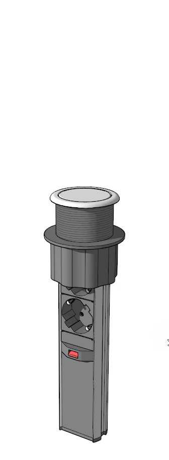 В параметрах блока розеток можно задать толщину столешницы или другой панели, в которую будет монтироваться блок. Это сместит зажимную муфту на нужное расстояние.