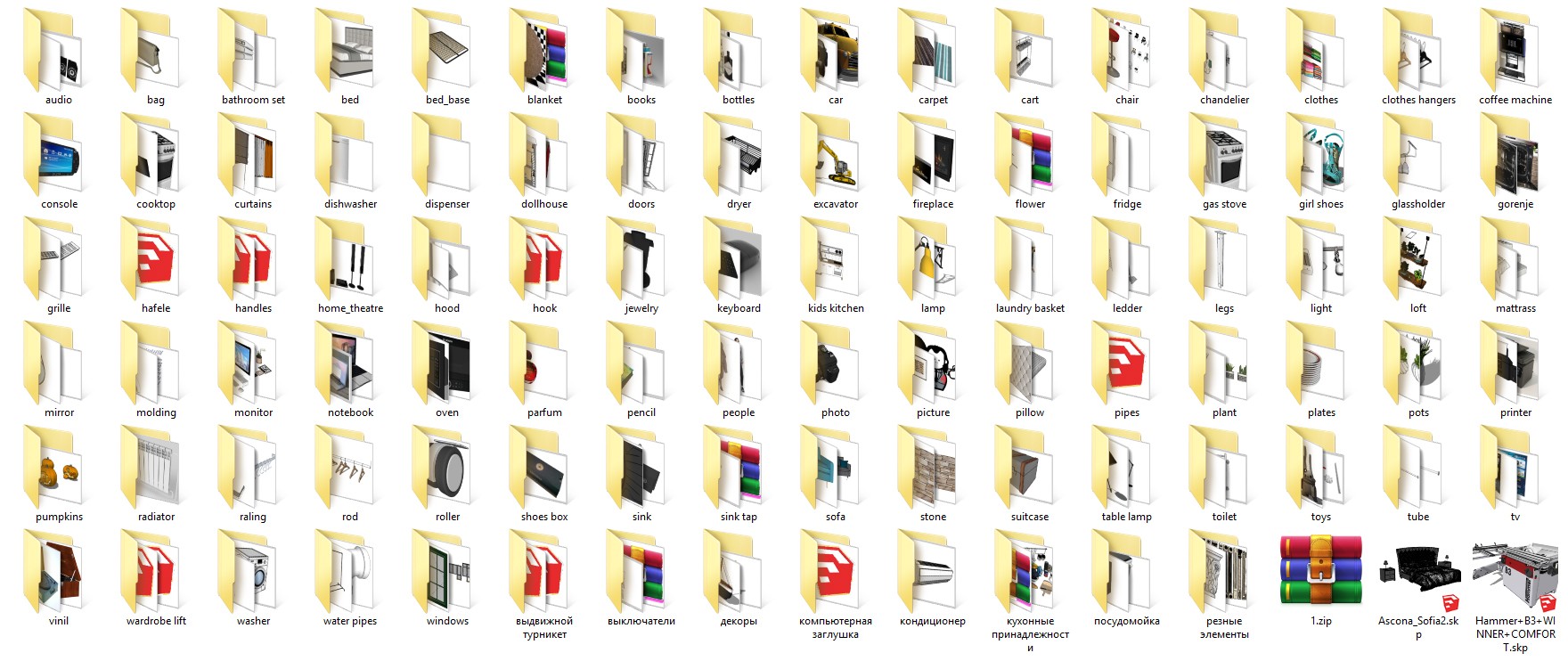 Друзья! Многие из вас просили выложить коллекцию моделей, которую мы собираем с 3D Warehouse и затем используем их в своих проектах.