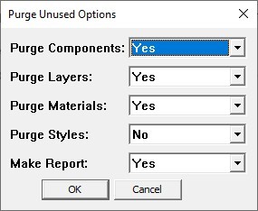 Во время работы в программе SketchUp накапливается множество неиспользуемых компонентов, материалов и даже слоёв. К примеру, Вы удалили ненужный модуль библиотеки EasyKitchen из рабочей области, а фактически он остаётся в списке компонентов модели. Как и текстуры, в которые он был раскрашен. Всё это занимает место в памяти, из-за чего программа начинает подтормаживать.