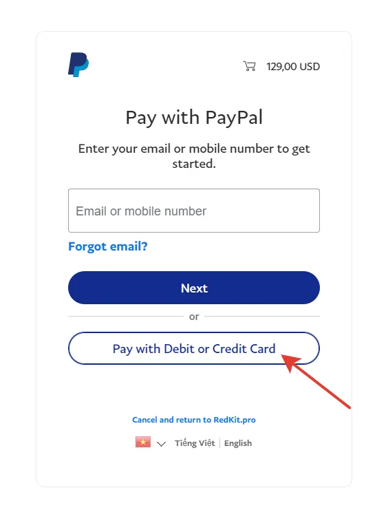 Если аккаунта PayPal у вас нет, то нажимайте на вторую кнопку "Pay with Debit or Credit Card" и переходите к следующему пункту этой инструкции: