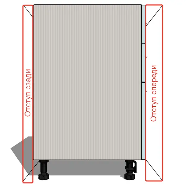 - Отступы позволяют создать технический зазор сзади, за нижним рядом кухонных шкафов;